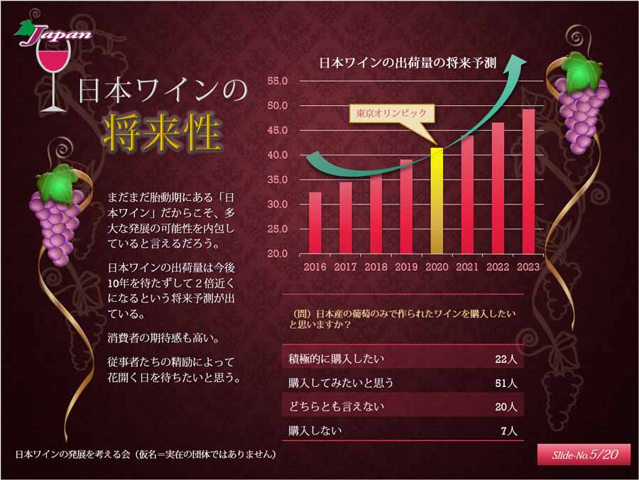 出荷量伸び率の将来予測グラフにアニメーションを適用した例を解説しています。